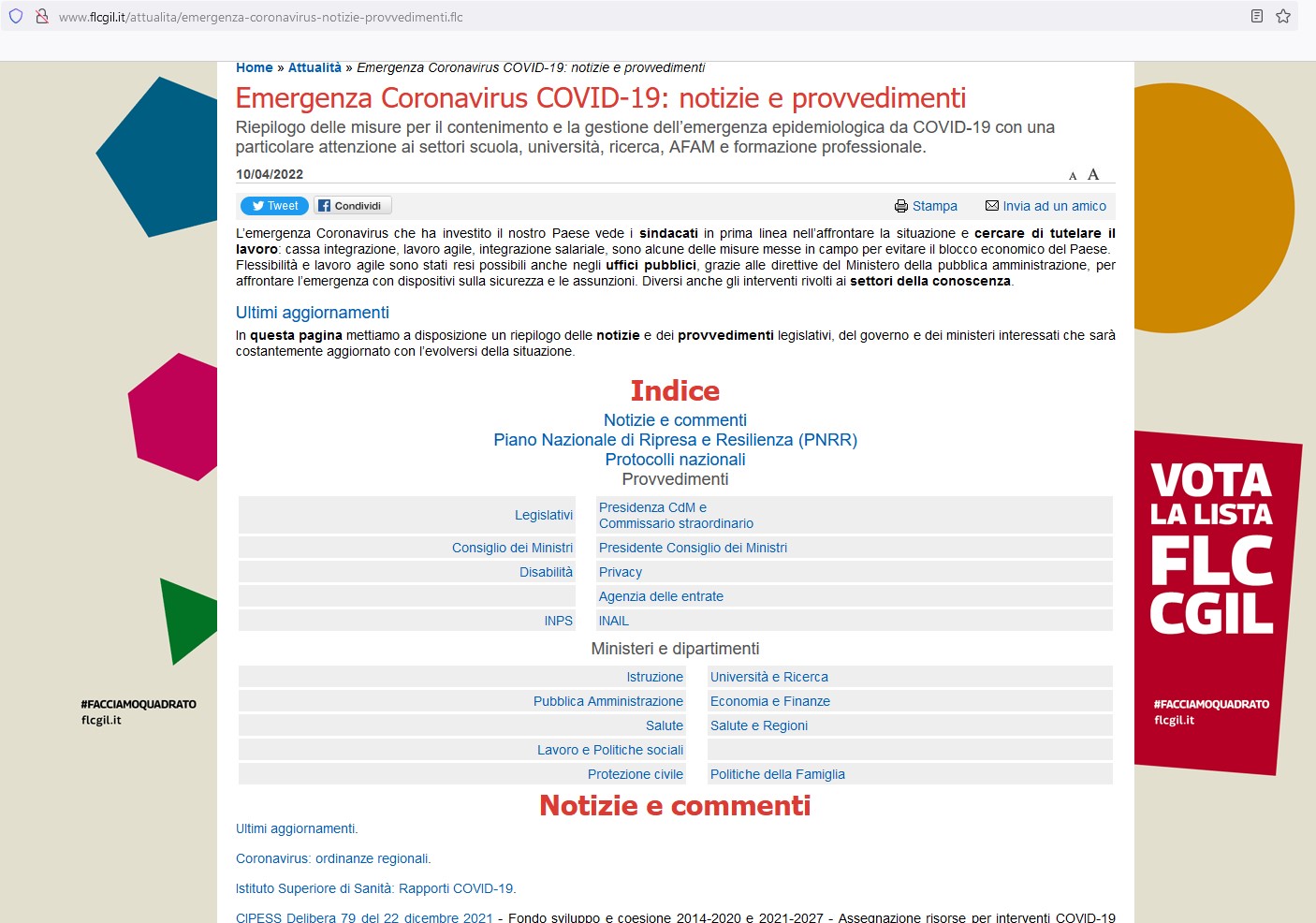 Um in dieser Zeit des gesundheitlichen Notstands aufgrund von Covid-19 auf dem Laufenden zu bleiben, lesen Sie die Nachrichten auf der nationalen FLC-CGIL-Website.